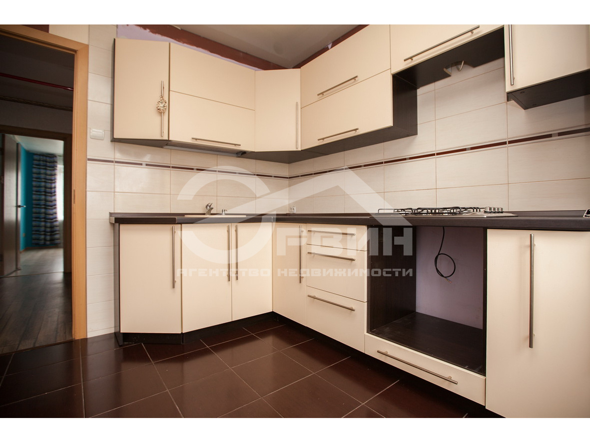 Кухня оборудована всей необходимой техникой, мебель частично.