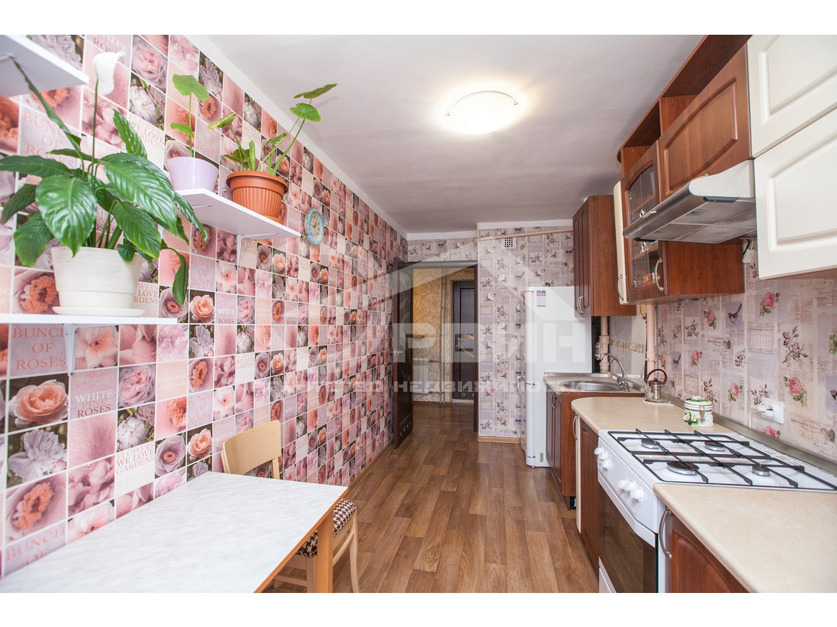 Общая площадь квартиры 63,3 кв.м, комнаты смежно-изолированные, коридор 7,6 кв.м, большая кухня 10,4 кв.м со встроенным гарнитуром, санузел раздельный в кафеле, два застеклённых балкона на разные стороны с красивым видом на город, две кладовки.
