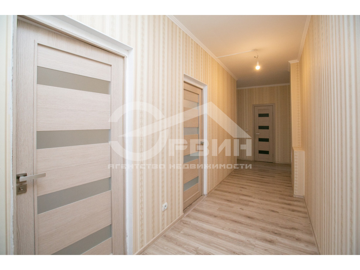 Площадь комнат 17,2 кв.м, 12,3 кв.м и 12,1 кв.м, площадь кухни 8,2 кв.м, большой коридор 12,6 кв.м, где можно порезвиться детям.