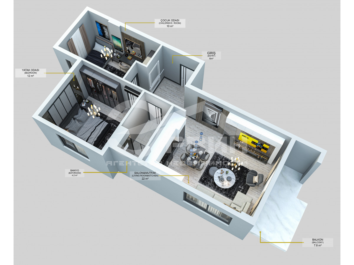 Продам квартирy, 77 м2, 2 комнаты, 3 этаж, Алания
