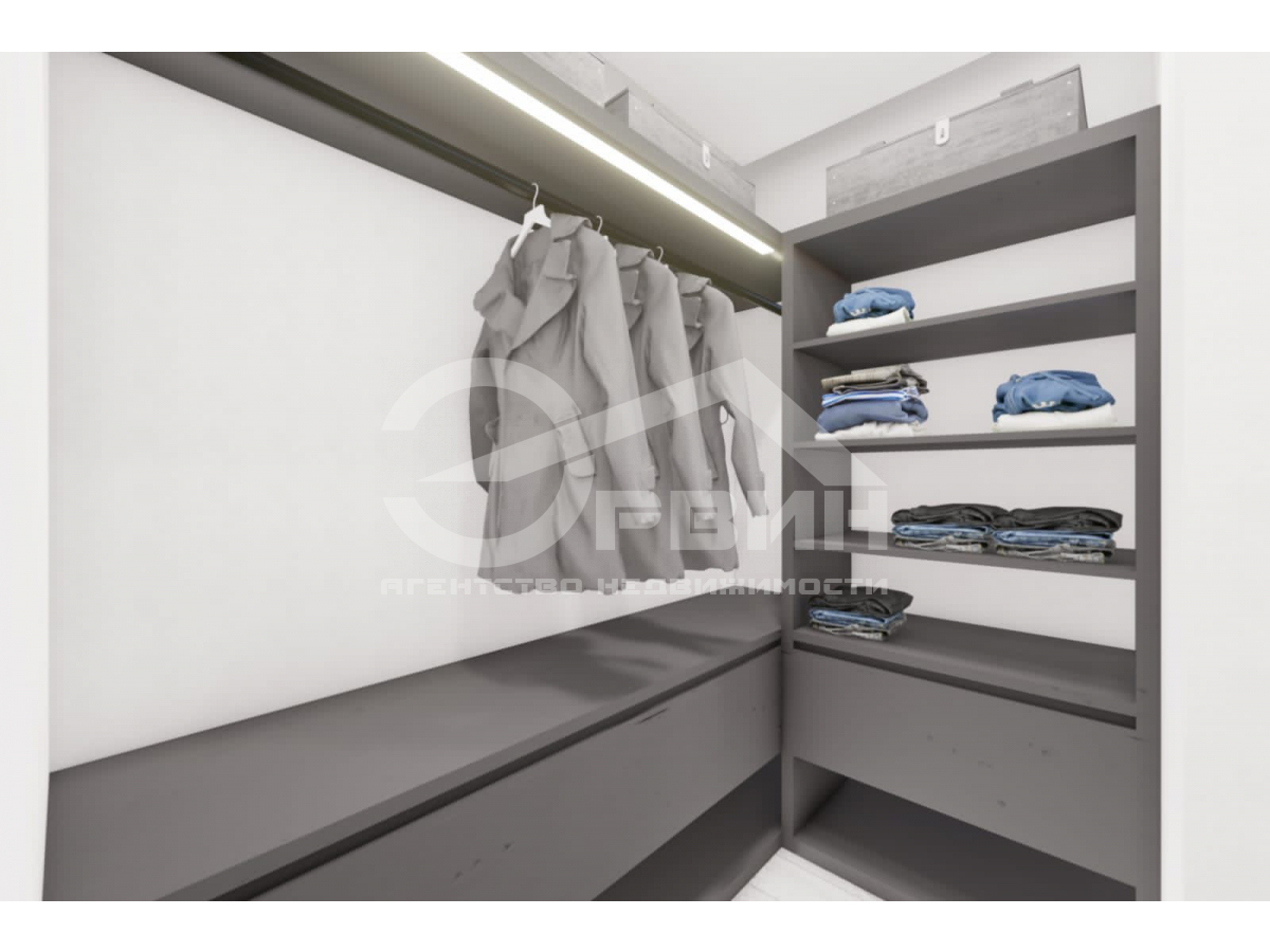 Есть 3 просторные гардеробные комнаты
