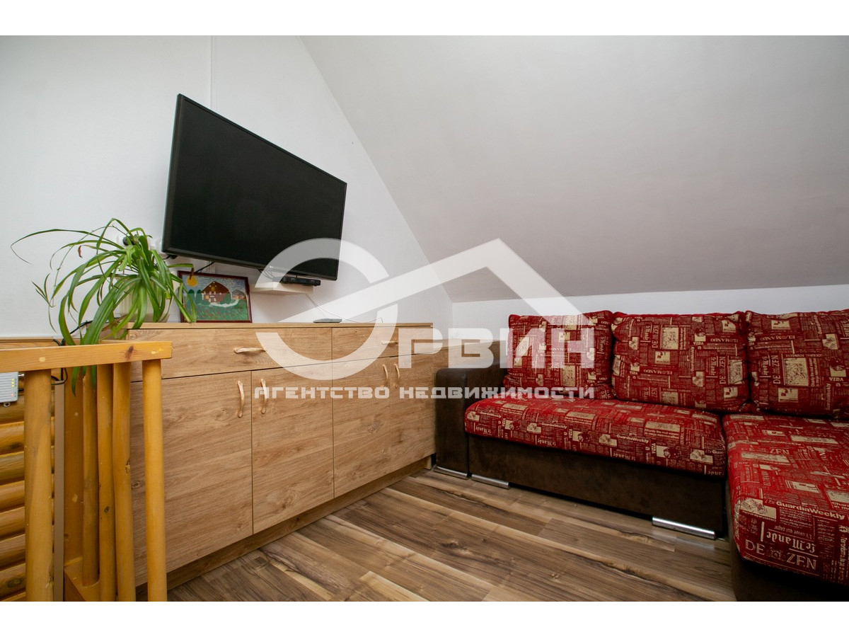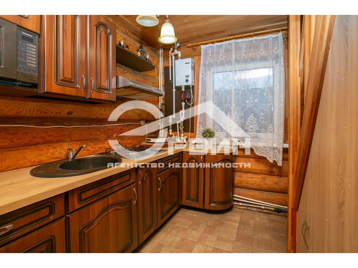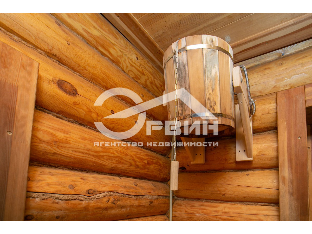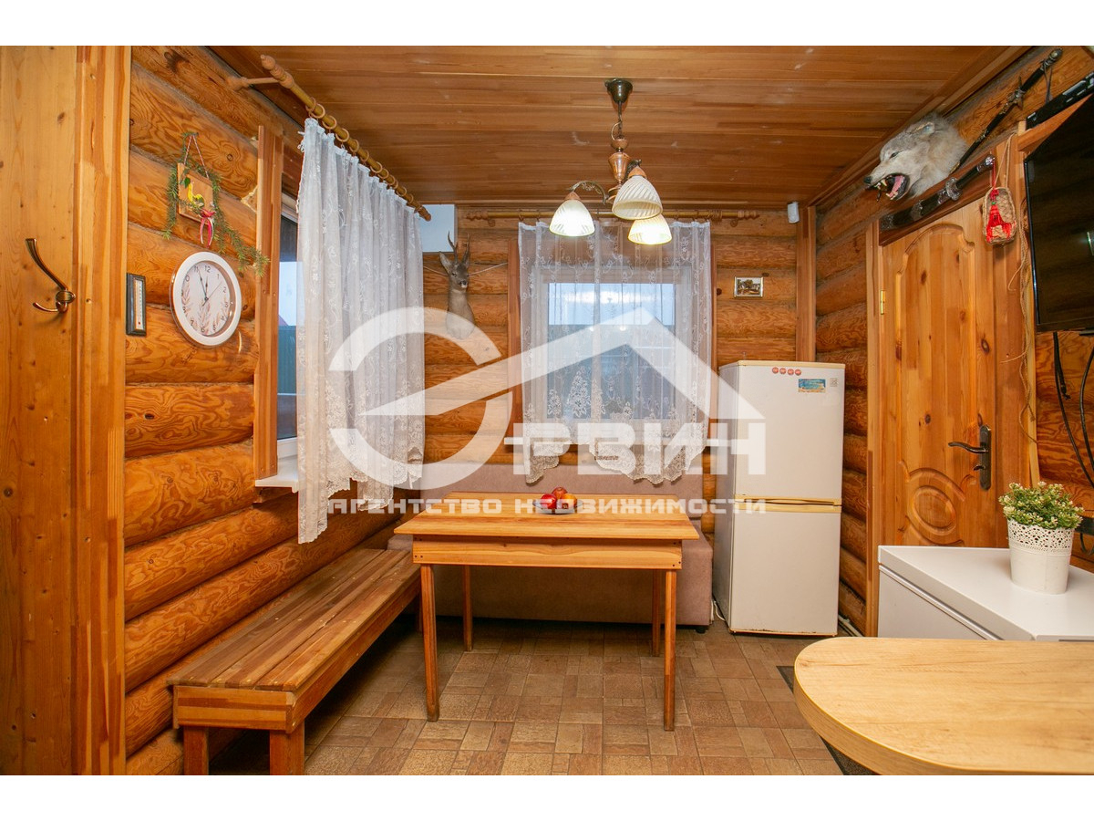 Основной жилой дом с баней 53,8 кв. м на первом этаже с кухней столовой, санузлом на первом этаже. На втором этаже расположена жилая комната с выходом на балкон. Дом выполнен из деревянного, экологического сруба.